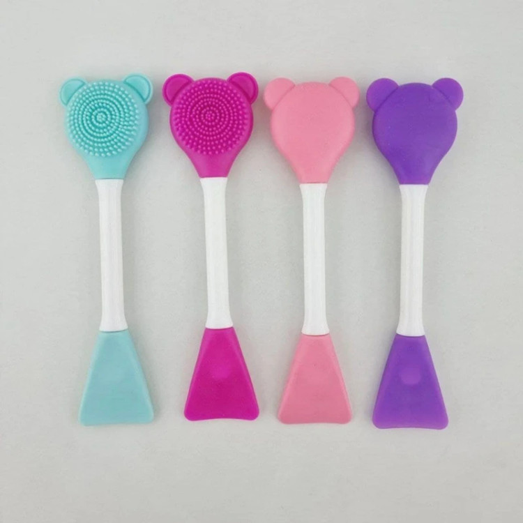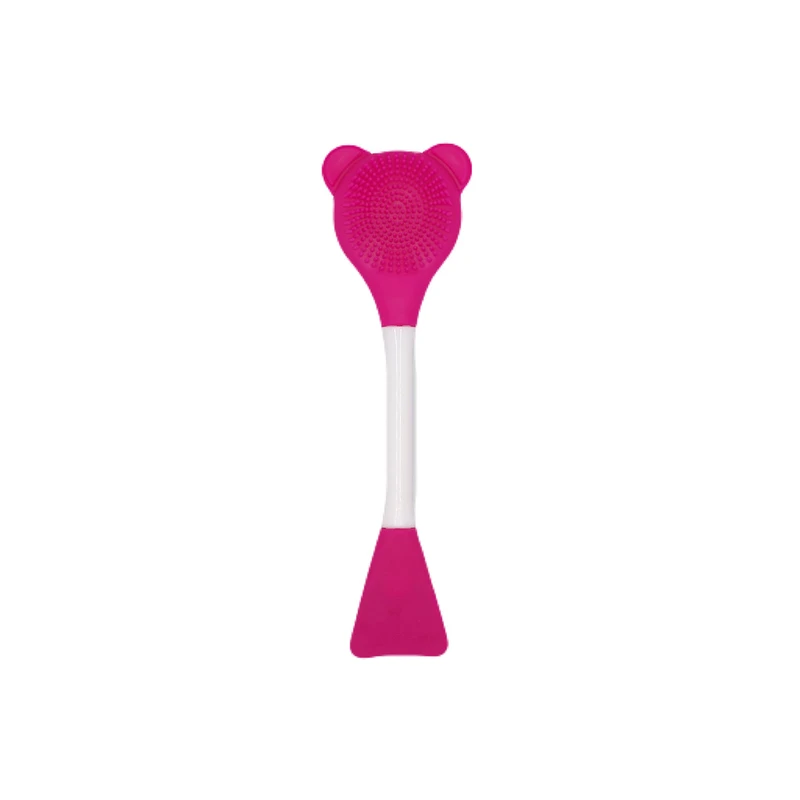 براش ماسک زنی و فیس براش طرح خرسی دارای هر دو سر سلیکونی و دسته پلاستیکی میباشد که یک سر آن مناسب برای ماسک زدن روی پوست و سر دیگر آن جهت شستشو و ماساژ کاربرد دارد. هر دو سر براحتی قابل شستشو هستند و دارای رنگهای سرخابی، بنفش، گلبهی ، صورتی و آبی میباشند.